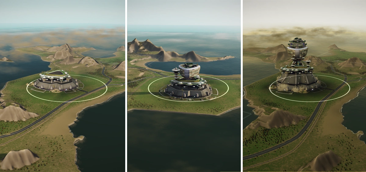 The Launch Arcology returns as a landmark in the SimCity: Cities of Tomorrow expansion. It is available by pre-ordering the expansion. The building is placed under the Tourism tab of the City Specializations. Upon plopping down the structure in one's city, tourists and prisoners will begin settling into the edifice. After 5,000 spots are filled, the player is given the option to launch the Arcology into deep space. Upon launch, the player would be rewarded a large sum of cash from the 'ticket sales' of the landmark.