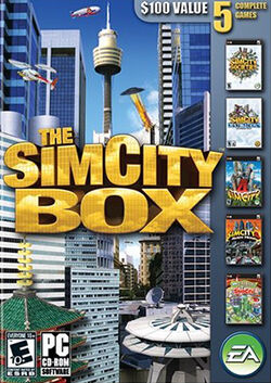 The SimCity Box is a game compilation that includes copies of SimCity 4 and its expansion pack Rush Hour, SimCity Societies and its expansion pack Destinations, as well as the spinoff The Sims Carnival: SnapCity. A demo of the Spore Creature Creator is also included.